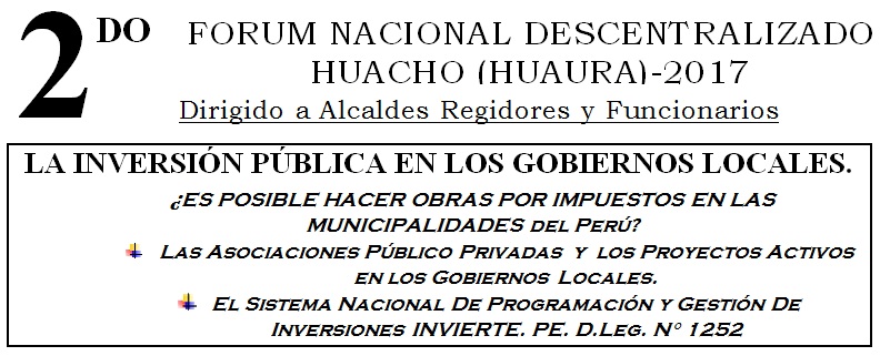 DIRIGIDO A: Alcaldes, Regidores, Gerente Municipal, Asesores, Asesor Legal, Secretario General, Jefe de las Unidades Formuladoras e integrantes de las áreas de Desarrollo Urbano y Responsable de Obras.