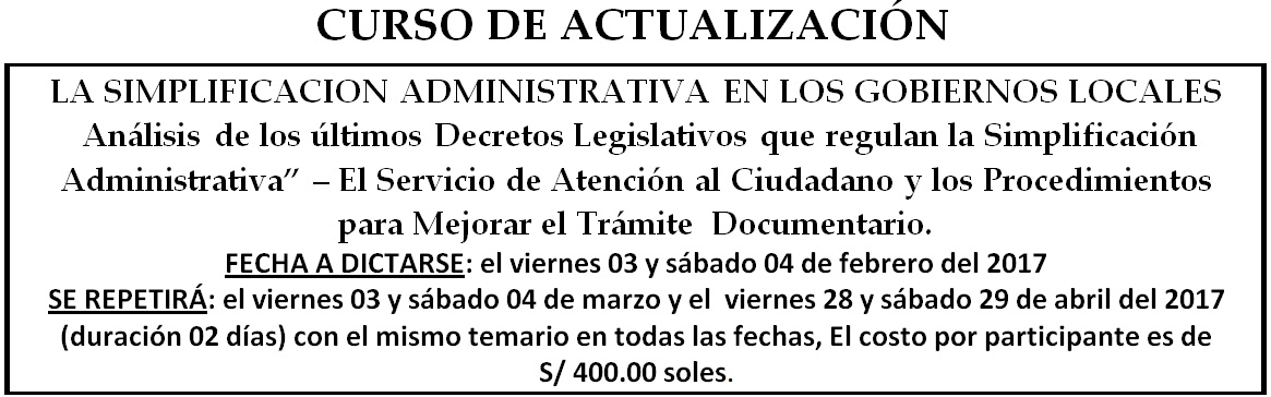 IMPORTANTE: Favor de comunicar su participación a la brevedad por razones de cupo, así mismo las Municipalidades que tienen Contrato de Capacitación a Costo Fijo podrán acreditar en este evento hasta 02 participantes sin costo alguno.