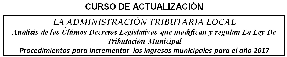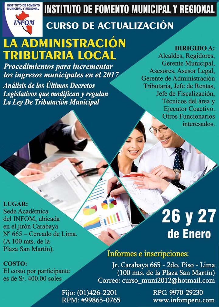 DIRIGIDO A: Alcaldes, Regidores, Gerente Municipal, Asesores, Asesor Legal, Secretario General, Gerente de Administración Tributaria, Jefe de Rentas, Jefe de Fiscalización, Ejecutor Coactivo, Auxiliares Coactivos, entre otros Funcionarios interesados.