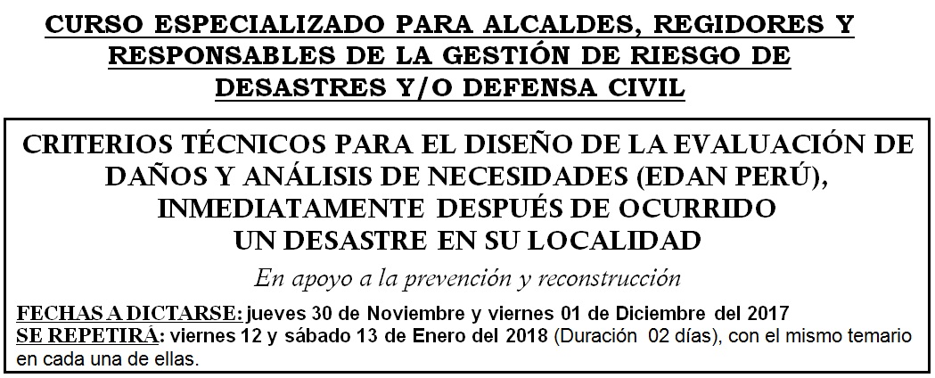 DIRIGIDO A: Alcaldes, Regidores, Gerente Municipal, Responsables de la Oficina de Defensa Civil o Gestión de Riesgo de Desastres de la municipalidad, Secretario Técnico de Defensa Civil.
