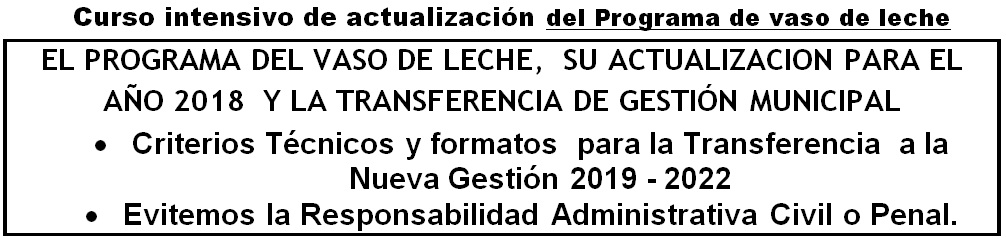 DIRIGIDO A : Alcaldes, Regidores, Gerente Municipal, Gerente de Desarrollo Social, Responsable del Programa de Vaso de Leche y Técnicos del área, Otros.
