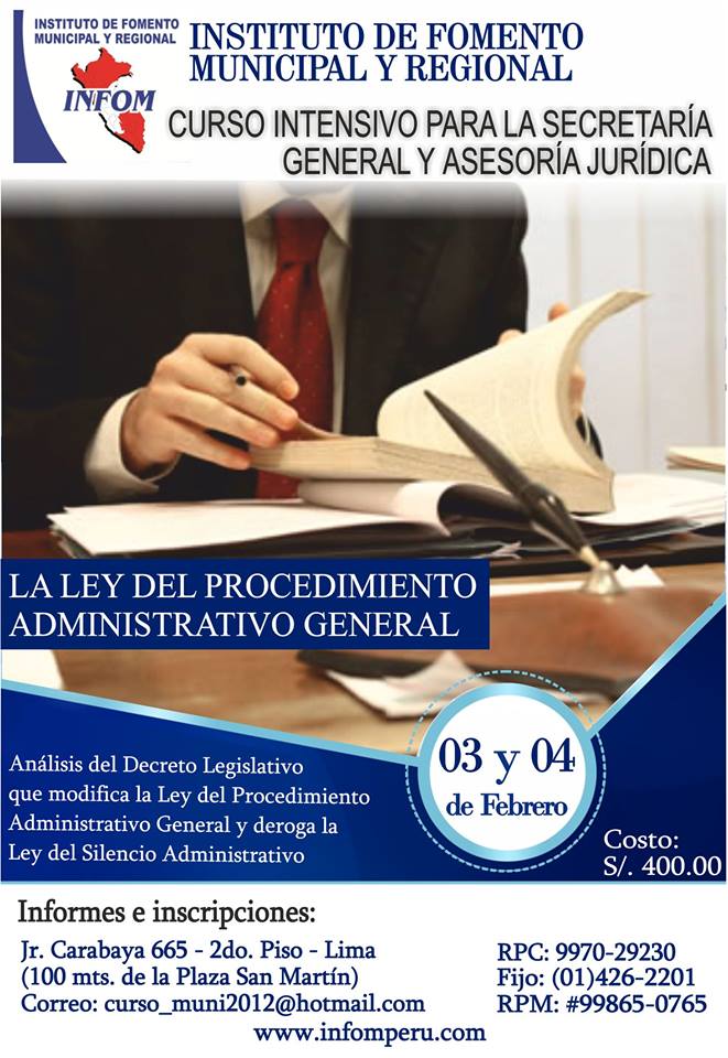 LUGAR: Sede Académica del INFOM, ubicada en el jirón Carabaya Nº 665 – Cercado de Lima. (A 100 mts. de la Plaza San Martín).