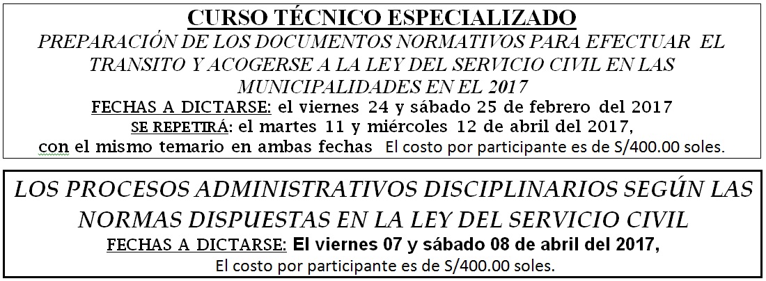 necesito invitación para el curso técnico especializado preparación de los documentos normativos para efectuar el tránsito y acogerse a la Ley del Servicio Civil en las Municipalidades en el 2017; a llevarse a cabo los días 11 y 12 de Abril del 2017. Secretario Técnico de la Municipalidad Distrital de San Juan Bautista – Iquitos-Loreto. correo electrónico: marioedup@hotmail.com