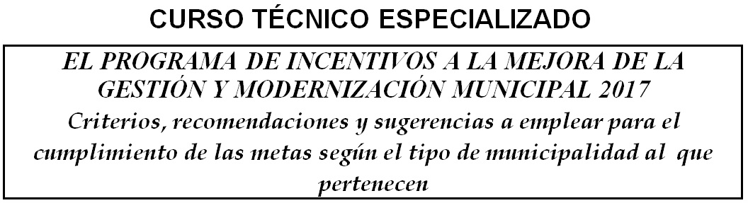 DIRIGIDO A: Alcaldes, Regidores, Gerente Municipal, Asesores, Asesor Legal, Secretario General y funcionario responsable del Programa de Incentivos.