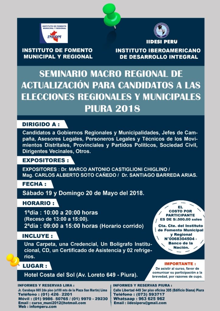 Seminario Macro Regional de Actualización para Candidatos a las Elecciones Regionales y Municipales Piura 2018